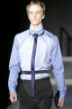 Осенне-зимняя коллекция выдержана в спокойной, темной гамме, подчеркивающей мужественность и зрелость одежды. Но по-прежнему в стиле D& G остались свитера крупной вязки, широкие штаны из мягкой кожи, рубашки с хулиганскими рисунками, куртки из крокодиловой кожи и роскошные меховые воротники. На следующий холодный сезон дуэт предложил три вещи, обещающие войти в моду - большие кожаные сумки-портфели, твидовые кепки в стиле "гаврош" и брюки, заправленные в сапоги. Гламурную часть коллекции представили костюмы-двойки из черного шелка с тонкими, как перо, галстуками. Коллекция представленная Миучча Прада (Prada) порождает сомнение насчет степени пригодности придуманного ею образа к эксплуатации. Бледная кожа анорексичных мальчиков, одетых в юбки поверх блестящих брюк, телесные водолазки, как вторая кожа выступающие из-под коротких топиков с воротничком под горло, свободные брюки-голифе в компании с яркими желтыми сапогами вполне красноречиво говорят о том, что коллекция Prada адресована в немалой степени секс-меньшинствам. Притягивают внимание необычные галстуки, двойные воротники, яркие резиновые сапоги и застегивающиеся на спине рубашки. Джорджио Армани (Giorgio Armani), начал свою коллекцию с показа лыжных костюмов. Мужчина, по Армани, ни за что не забудет про деловой костюм, классическую кожаную куртку, теплое, ностальгически-романтичное пальто, серые брюки и длинный, замысловатый, обращающий на себя внимание шарф. Модный дом Versace (автор коллекции - Донателла Версаче) на этот раз порадовал черными шубами до пола, дутыми и классическими твидовыми куртками с запахом, длинными кожаными пальто и шелковыми костюмами. Донателла сумела удачно поиграть с расцветкой, добавив к коричневому и серому гламурного полированного блеска. Остался верен своим традициям и Александр Маккуин - ничто не вдохновляет британского модельера так, как путешествия по всему миру. «Забираясь» с помощью одной модели на Запад и укутывая мужчину в теплое пончо, дизайнер затем «отправляется» на север, учась утепляться у эскимосов и таежных охотников, лучшим нарядом считающих шкуру убитого тигра.