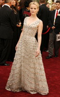 Многие актрисы отдают предпочтение винтажным нарядам, но в этот вечер Риз Уизерспун была вне конкуренции. Ее платье, украшенное розовыми лентами и бусами, в стиле 50-х годов, плюс сережки под цвет платья – все это несомненно украсило и без того прекрасную блондинку, получившую своего первого Оскара. Как сказала Риз журналу People, платье было сшито специально для нее в Париже.